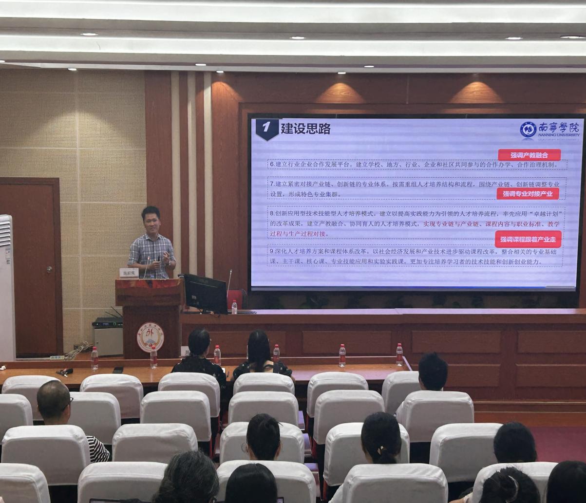 “应用型课程建设,核心是要打通‘专业链、产业链、课程链’的任督二脉。” 讲座开篇,陈积常教授便以教育部 2015 年《关于引导部分地方普通本科高校向应用型转变的指导意见》为政策锚点,强调 “产教融合、专业对接产业、课程跟着产业走” 的核心逻辑。他结合南宁学院通信工程专业的改革实践,指出传统课程体系存在 “学科知识与工作场景脱节” 的痛点,而应用型课程建设需以 “三对接” 为目标 —— 实现专业链与产业链对接、课程内容与职业标准对接、教学过程与生产过程对接,让学生在课堂中就能触摸行业真实需求。