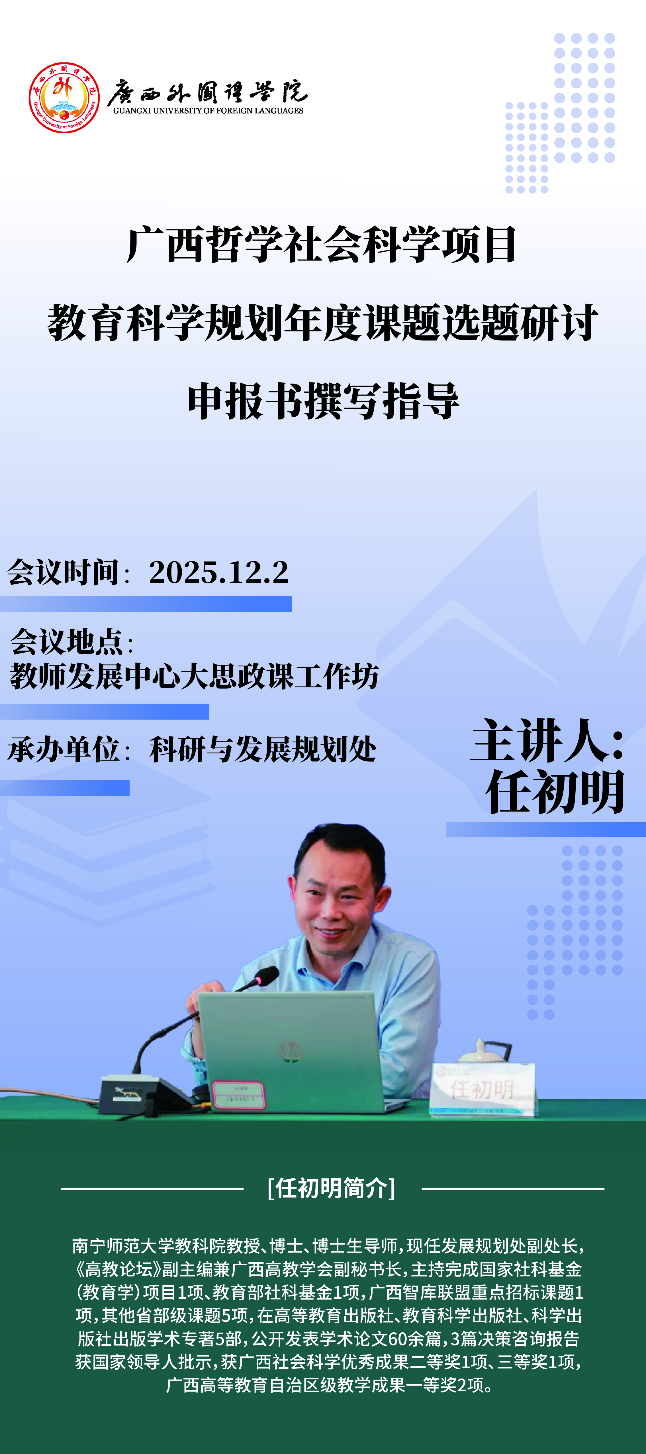 【博学大讲堂】广西哲学社会科学项目教育科学规划年度课题选题研讨与申报书撰写指导