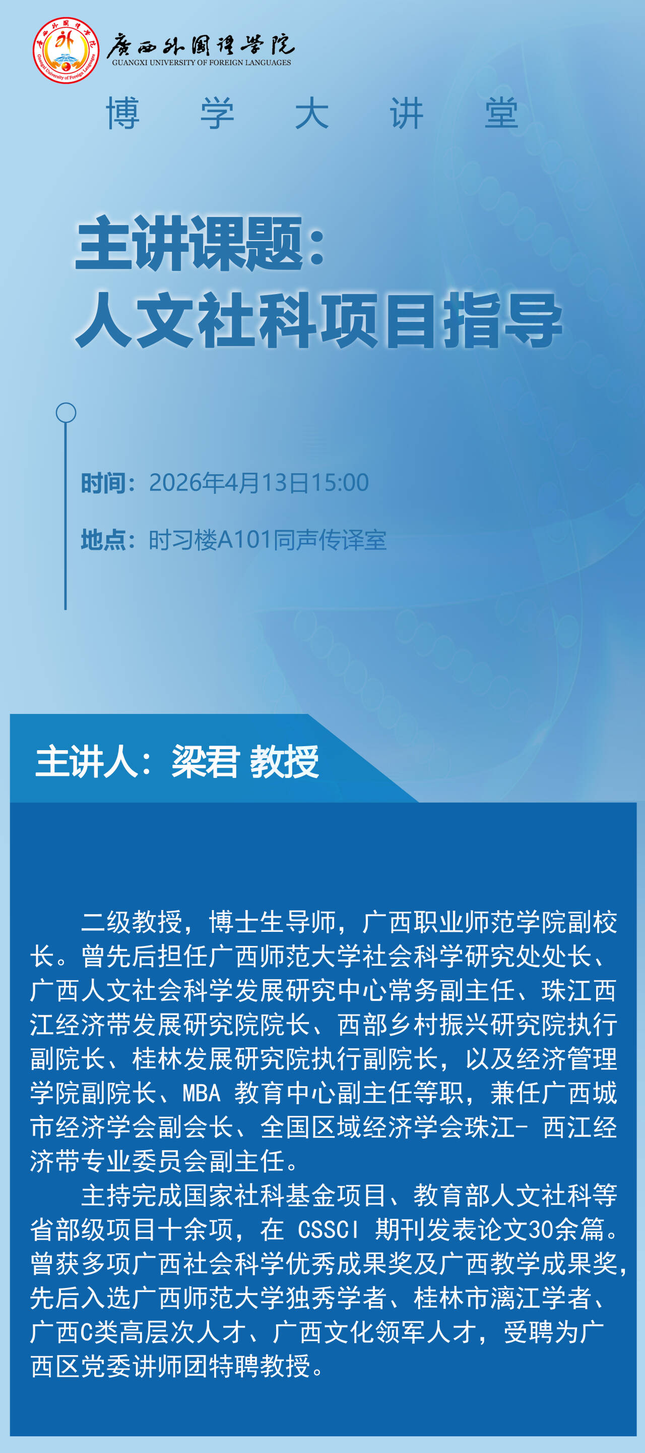 下一条:【博学大讲堂】梁君教授莅临我校指导国家社科基金项目申报工作
