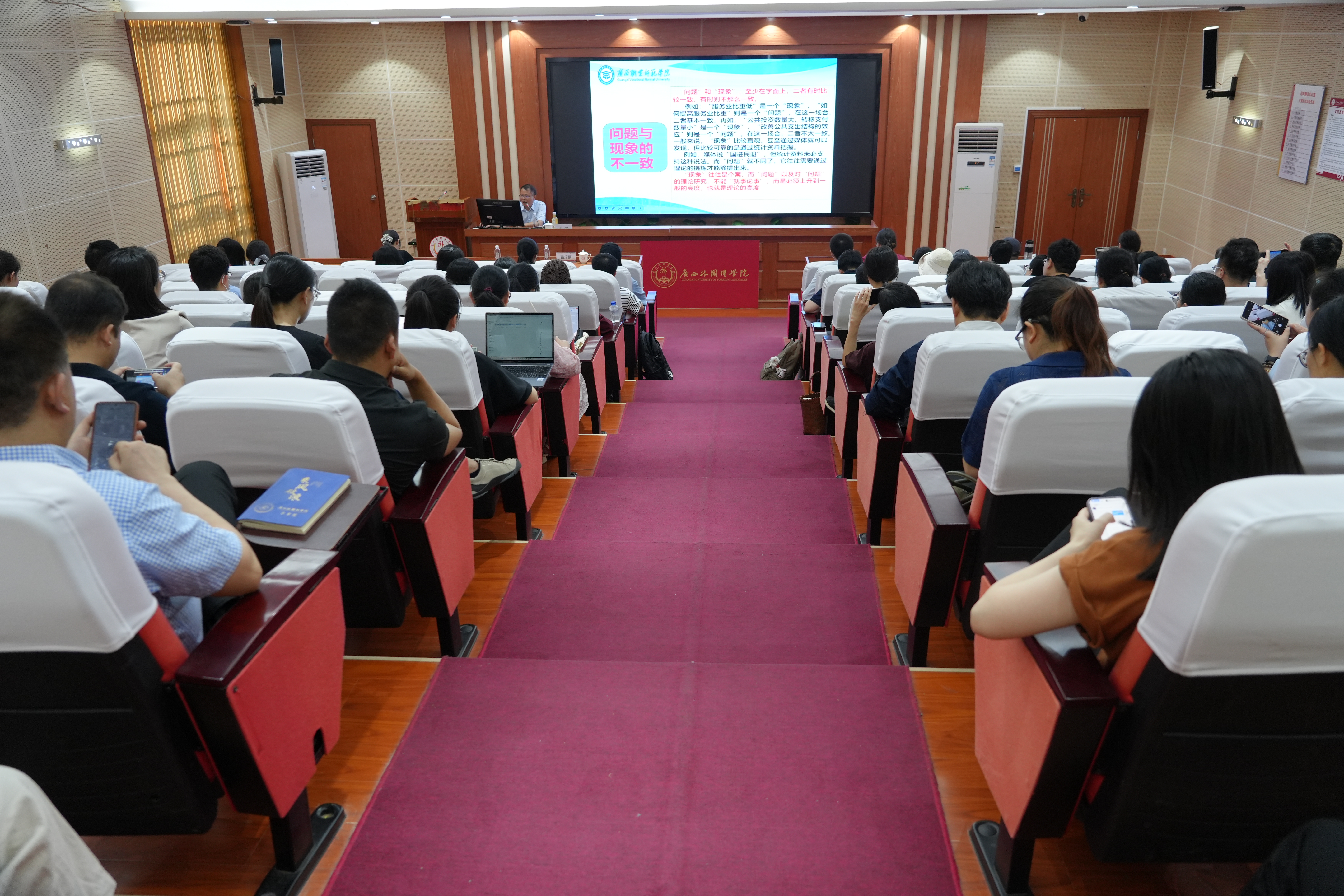 为有效提升我校教师国家社科基金项目申报质量与立项率,2026年4月13日下午3时,广西外国语学院特邀广西职业师范学院副校长梁君教授,在我校时习楼A101同声传译室,作国家社科基金项目申报指导专题讲座。讲座由科研与发展规划部负责主持,各二级学院分管科研负责人、科研骨干及青年教师近百人现场参加。